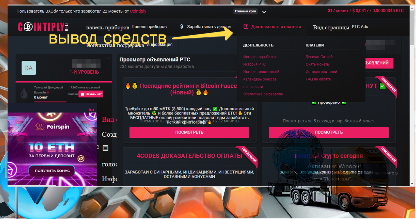 Cointiply-заработок криптовалюты Bitcoin с нуля, краткая инструкция.